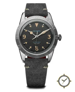 A Field watch with a bold 42.5mm presence on the wrist, crafted from stainless steel featuring a black dial with a unique grained finish.