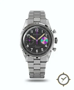 A Chronograph watch with a versatile 38mm case, that suits most wrists, crafted from stainless steel featuring a black dial with a unique matte finish.
