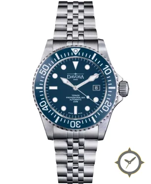 A Dive watch with a vintage-inspired 36.5mm case, crafted from stainless steel featuring a blue dial with a unique matte finish.