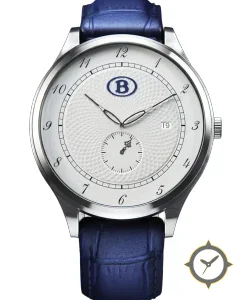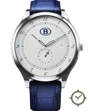 A Dress watch with a bold 43mm presence on the wrist, crafted from stainless steel featuring a white dial with a unique guilloché (engine-turned) with radiating pattern finish.