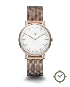 A Minimalist watch with a vintage-inspired 30.5mm case, crafted from stainless steel featuring a white dial with a unique matte smooth finish.