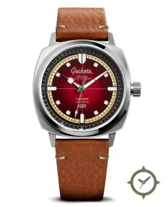 A Vintage watch with a bold 48mm presence on the wrist, crafted from stainless steel featuring a red dial with a unique sunburst finish.