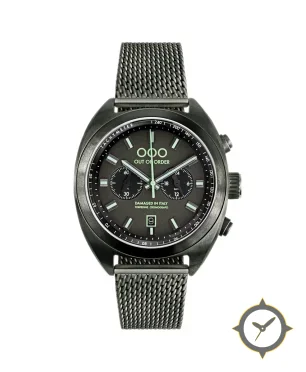 A Chronograph watch with a bold 44mm presence on the wrist, crafted from stainless steel featuring a black dial with a unique matte finish.