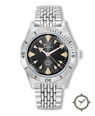 A Dive watch with a bold 42.5mm presence on the wrist, crafted from stainless steel featuring a black dial with a unique sunburst finish.