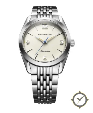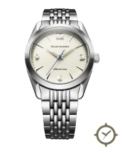 A Dress watch with a versatile 38mm case, that suits most wrists, crafted from stainless steel featuring a white dial with a unique matte finish.