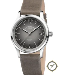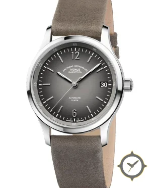 A Field watch with a vintage-inspired 30.5mm case, crafted from stainless steel featuring a gray dial with a unique gradient (fumé) finish.