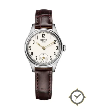 A Dress watch with a vintage-inspired 25.5mm case, crafted from stainless steel featuring a white dial with a unique matte finish.