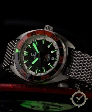 A Dive watch with a bold 43.5mm presence on the wrist, crafted from stainless steel featuring a black dial with a unique matte finish.