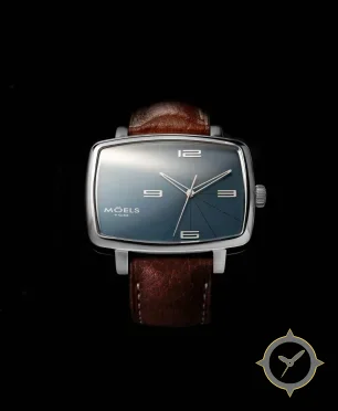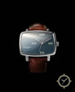 A Dress watch with a vintage-inspired 37.5mm case, crafted from stainless steel featuring a blue dial with a unique sunburst with radial lines finish.
