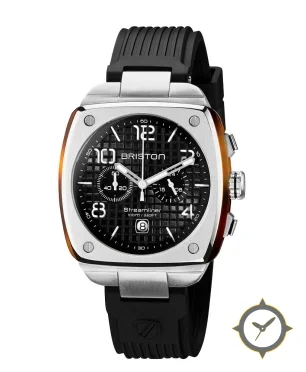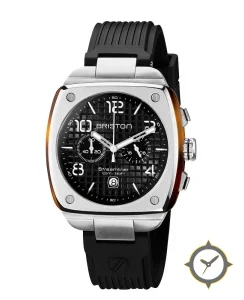 A Chronograph watch with a versatile 40.5mm case, that suits most wrists, crafted from stainless steel featuring a black dial with a unique textured waffle/grid pattern finish.