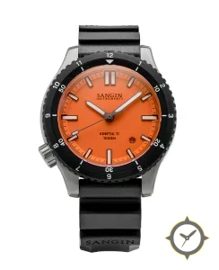 A Dive watch with a vintage-inspired 30.5mm case, crafted from titanium featuring a orange dial with a unique matte finish.