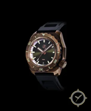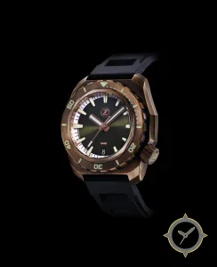 A Dive watch with a bold 50.5mm presence on the wrist, crafted from bronze featuring a green dial with a unique sunburst finish.