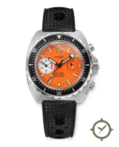 A Dive watch with a versatile 40mm case, that suits most wrists, crafted from stainless steel featuring a orange dial with a unique matte finish.