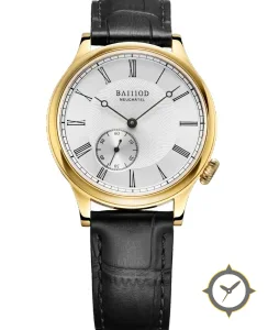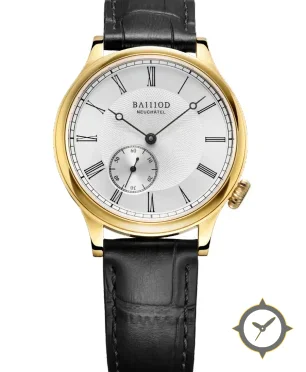 A Dress watch with a bold 42.5mm presence on the wrist, crafted from gold featuring a white dial with a unique guilloché (engine-turned) centre with smooth outer ring finish.