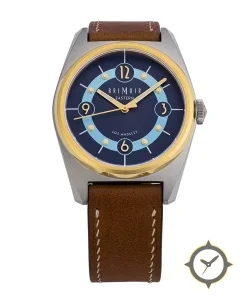 A Vintage watch with a vintage-inspired 35.5mm case, crafted from stainless steel featuring a blue dial with a unique lacquer finish.