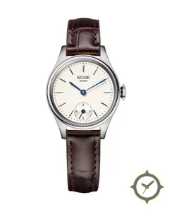 A Dress watch with a vintage-inspired 26mm case, crafted from stainless steel featuring a white dial with a unique smooth lacquer finish.