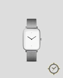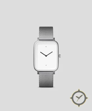 A Minimalist watch with a bold 47mm presence on the wrist, crafted from stainless steel featuring a white dial with a unique matte finish.
