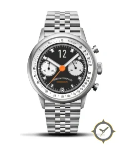 A Chronograph watch with a versatile 39mm case, that suits most wrists, crafted from stainless steel featuring a black dial with a unique matte finish.