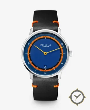 A Minimalist watch with a bold 42.5mm presence on the wrist, crafted from stainless steel featuring a blue dial with a unique matte finish.
