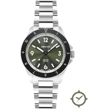 A Dive watch, crafted from stainless steel featuring a green dial with a unique radial sunburst finish.