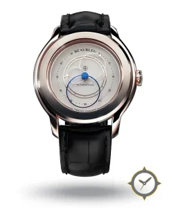 A Dress watch with a vintage-inspired 32mm case, crafted from gold featuring a white dial with a unique smooth lacquer finish.