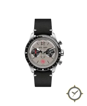 A Chronograph watch with a bold 44.5mm presence on the wrist, crafted from stainless steel featuring a gray dial with a unique matte finish.