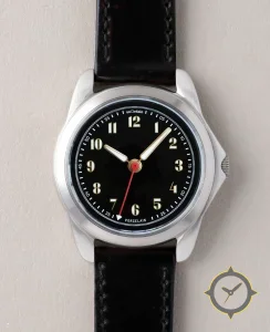 A Field watch with a versatile 40.5mm case, that suits most wrists, crafted from stainless steel featuring a black dial with a unique glossy finish.