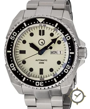 A Dive watch with a bold 47.5mm presence on the wrist, crafted from stainless steel featuring a white dial with a unique matte luminous finish.