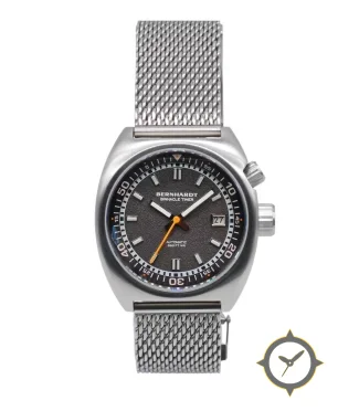 A Dive watch with a bold 49mm presence on the wrist, crafted from stainless steel featuring a gray dial with a unique grained/pebble texture finish.