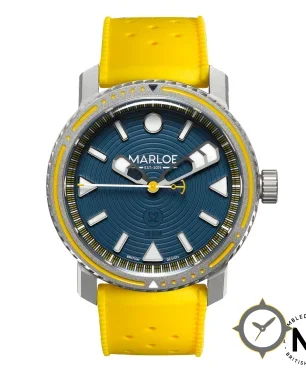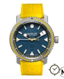 A Dive watch with a bold 46.5mm presence on the wrist, crafted from stainless steel featuring a blue dial with a unique concentric circular grooves finish.