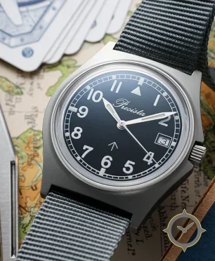 A Field watch with a bold 46.5mm presence on the wrist, crafted from stainless steel featuring a black dial with a unique matte finish.