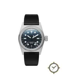 A GMT watch with a vintage-inspired 31.5mm case, crafted from stainless steel featuring a blue dial with a unique sunburst finish and a true GMT complication for tracking a second time zone.