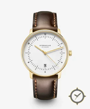 A Minimalist watch with a bold 42.5mm presence on the wrist, crafted from gold featuring a white dial with a unique smooth finish.