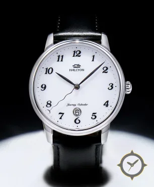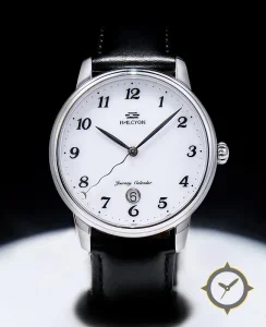 A Dress watch with a vintage-inspired 37mm case, crafted from stainless steel featuring a white dial with a unique enamel finish.
