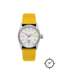 A Minimalist watch with a vintage-inspired 33mm case, crafted from stainless steel featuring a white dial with a unique matte finish.