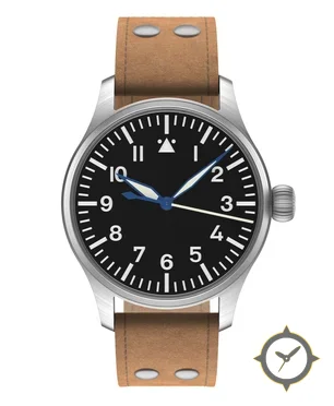 A Pilot watch with a vintage-inspired 37.5mm case, crafted from stainless steel featuring a black dial with a unique matte finish.