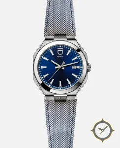 A Sports watch with a versatile 41mm case, that suits most wrists, crafted from stainless steel featuring a blue dial with a unique sunburst finish.