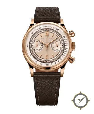 A Chronograph watch with a bold 42.5mm presence on the wrist, crafted from gold featuring a white dial with a unique matte finish.