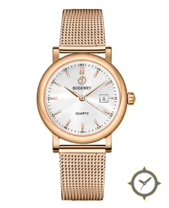 A Dress watch with a vintage-inspired 26mm case, crafted from gold featuring a silver dial with a unique sunburst finish.