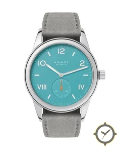 A Minimalist watch with a vintage-inspired 34.5mm case, crafted from stainless steel featuring a turquoise dial with a unique matte finish.