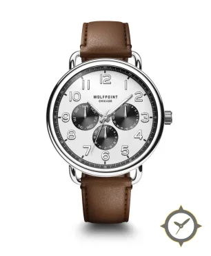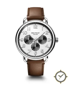 A Dress watch with a vintage-inspired 36.5mm case, crafted from stainless steel featuring a white dial with a unique smooth finish.