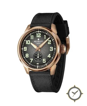 A Field watch with a versatile 41mm case, that suits most wrists, crafted from gold featuring a black dial with a unique textured/grained, slight sunburst gradient towards center finish.
