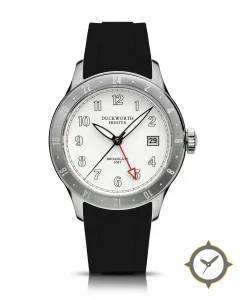 A GMT watch with a bold 47.5mm presence on the wrist, crafted from stainless steel featuring a white dial with a unique lacquer finish and a true GMT complication for tracking a second time zone.