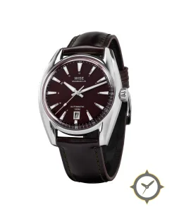 A Dress watch with a bold 46mm presence on the wrist, crafted from stainless steel featuring a brown dial with a unique sunburst finish.