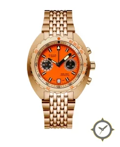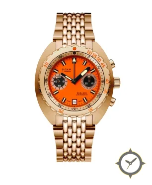 A Dive watch with a bold 49.5mm presence on the wrist, crafted from gold featuring a orange dial with a unique smooth-lacquer finish.