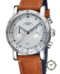A Chronograph watch with a bold 48.5mm presence on the wrist, crafted from stainless steel featuring a white dial with a unique hobnail (clous de Paris) guilloche finish.