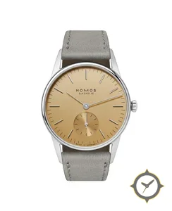 A Dress watch with a vintage-inspired 29mm case, crafted from stainless steel featuring a gold dial with a unique radial sunburst (subtle) finish.