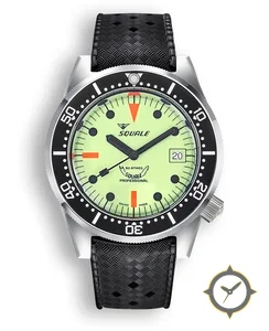 A Dive watch with a bold 45.5mm presence on the wrist, crafted from stainless steel featuring a green dial with a unique luminous finish.