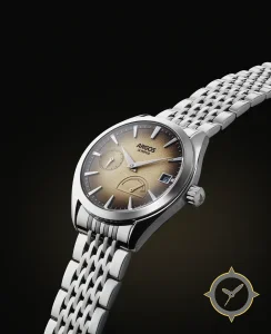 A Dress watch with a versatile 40mm case, that suits most wrists, crafted from stainless steel featuring a brown dial with a unique textured fumé / sunburst with light grain finish and a helpful power reserve indicator.