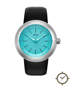 A Minimalist watch with a vintage-inspired 35.5mm case, crafted from stainless steel featuring a turquoise dial with a unique matte finish.
